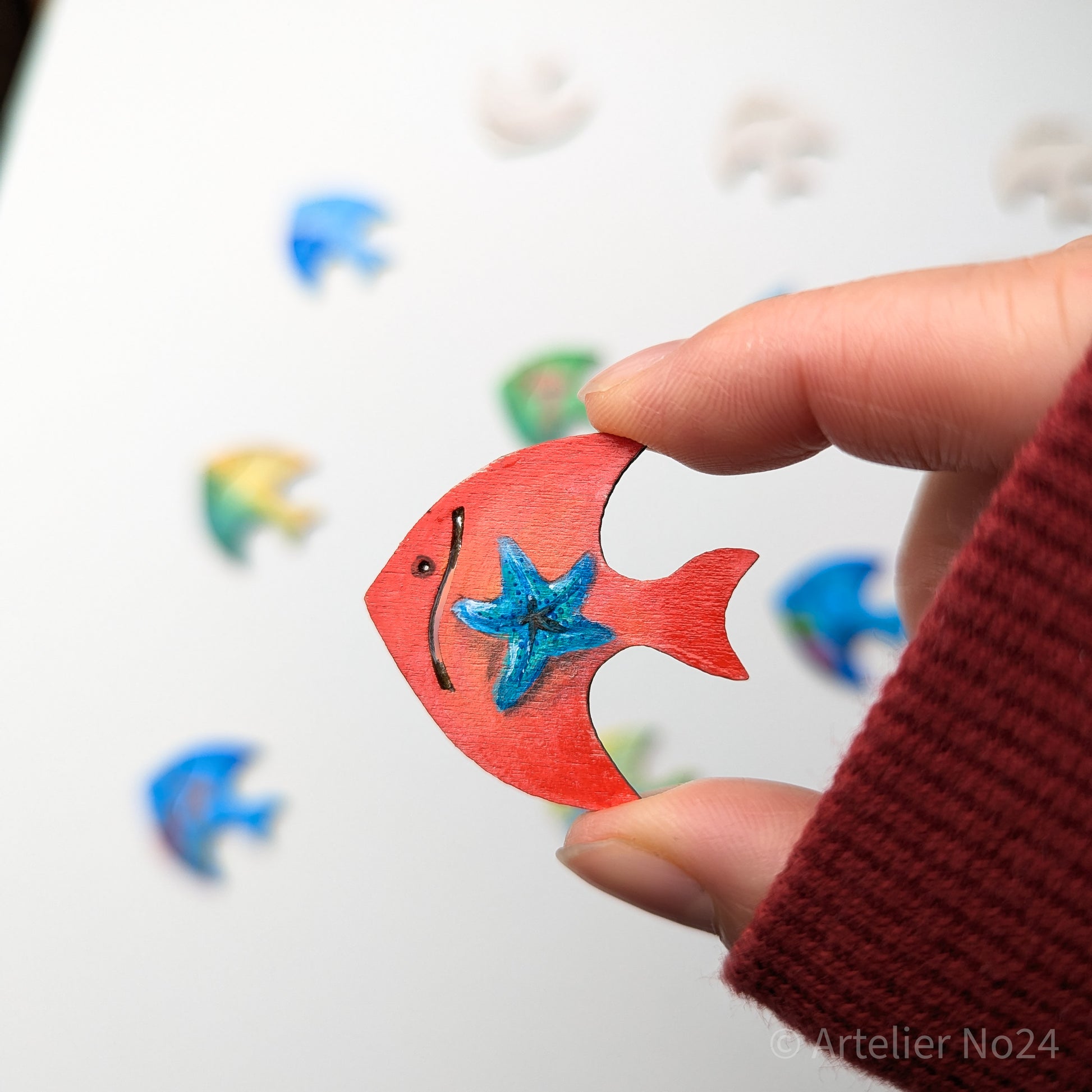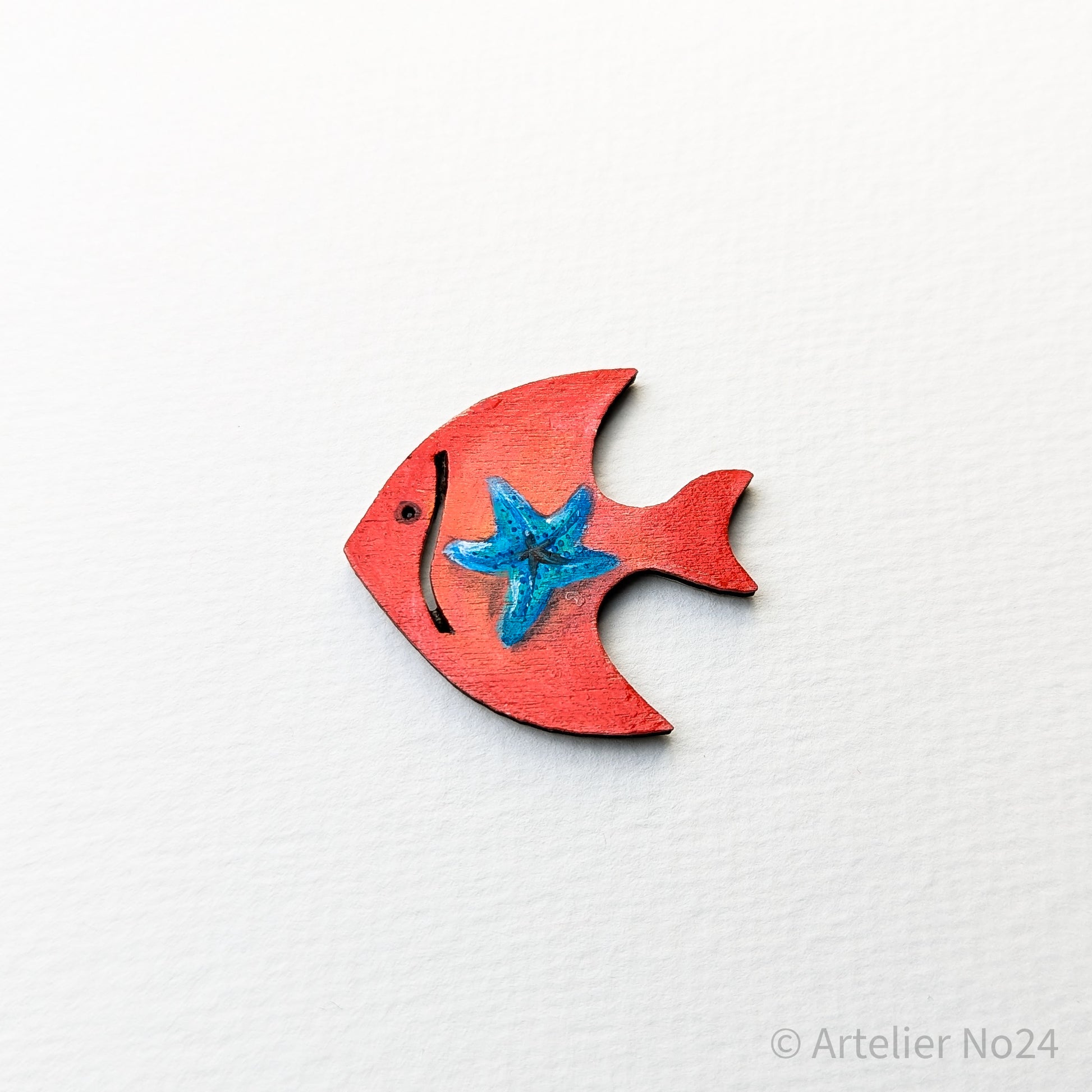 Holzminiatur Fisch – Handbemalte Brosche/Magnet - BRMAFI-0801