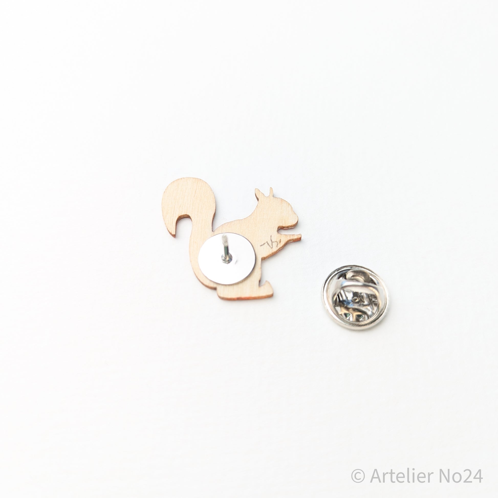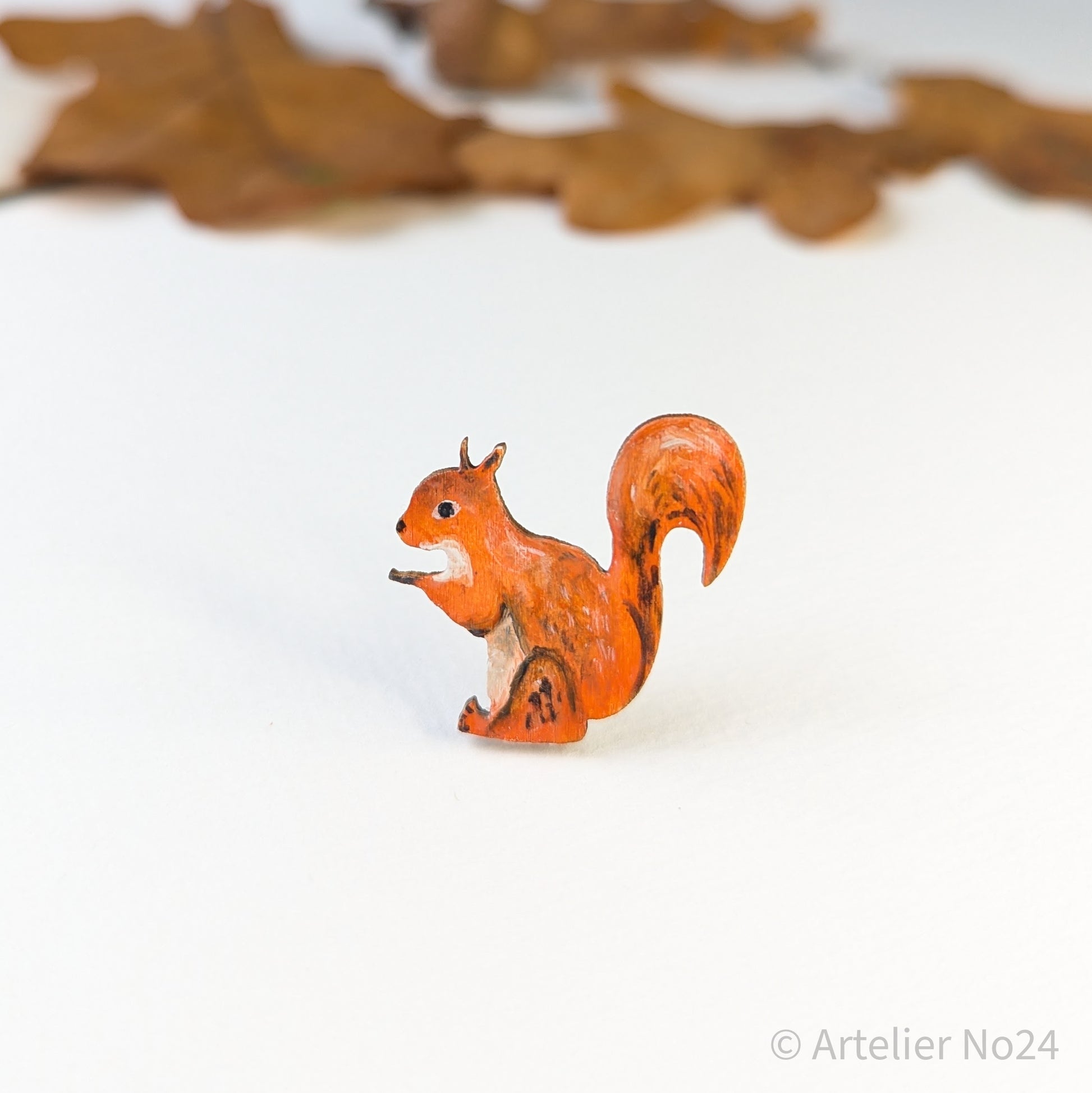Holzminiatur Eichhörnchen – Handbemalte Brosche/Magnet - MASQ-N5