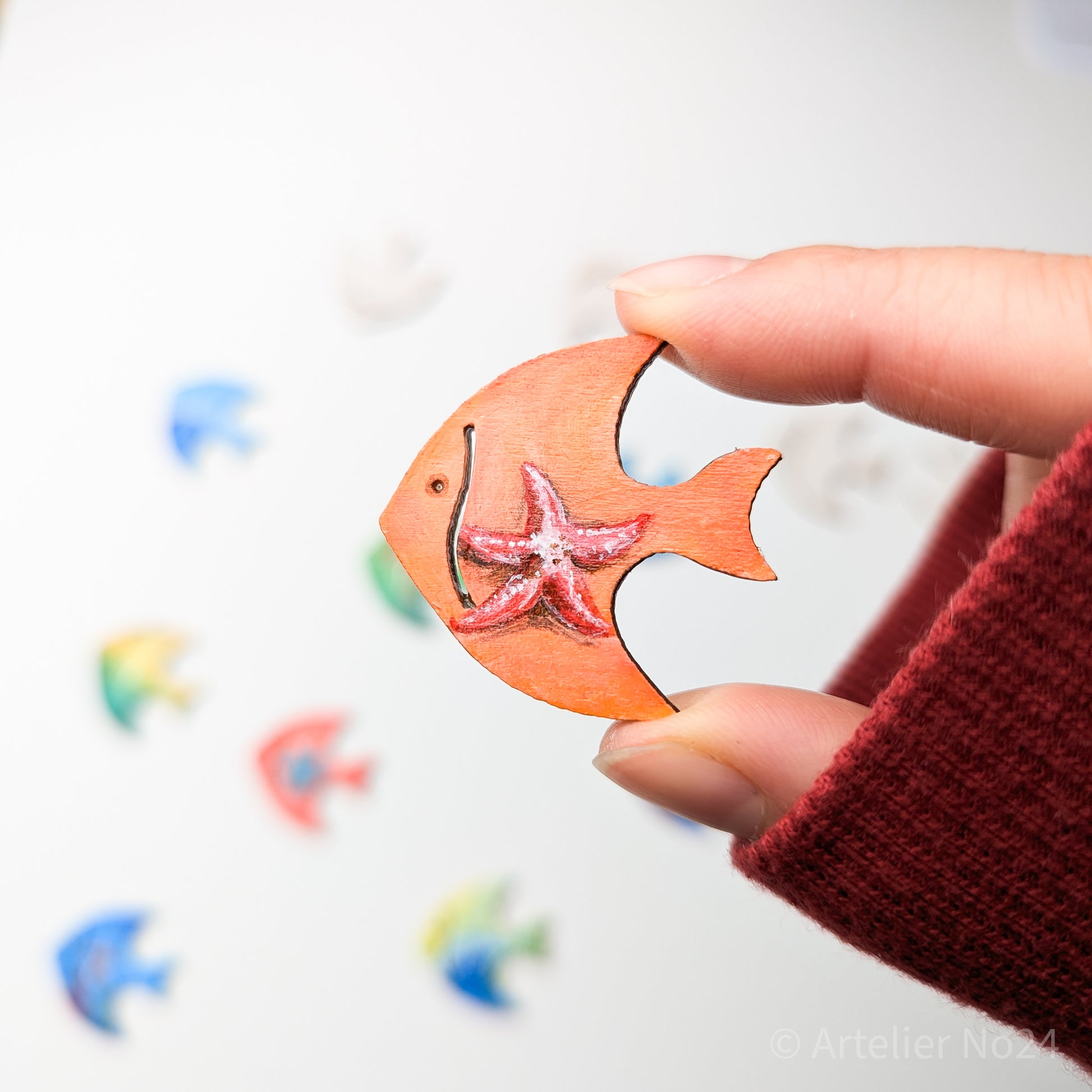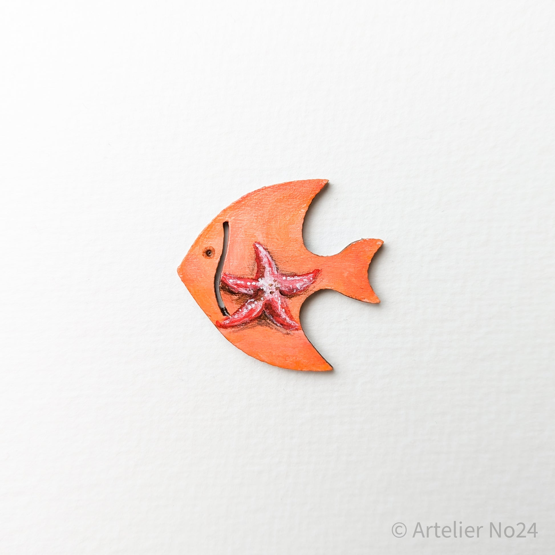 Holzminiatur Fisch – Handbemalte Brosche/Magnet - BRMAFI-0501