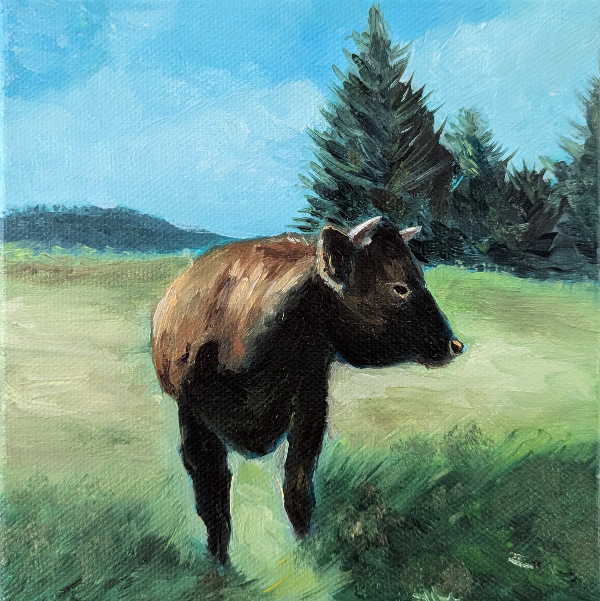 Ölfarbe auf Leinwand - Die Kuh - 20x20 cm